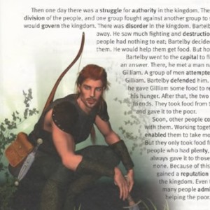 Then one day there was a struggle for authority in the kingdom. There was a division of the people, and one group fought against another group to see which would govern the kingdom. There was disorder in the kingdom. Bartelby ran away. He saw much fighting and destruction. Many people had nothing to eat; Bartelby decided to aid them. He would help them get food. But how?
