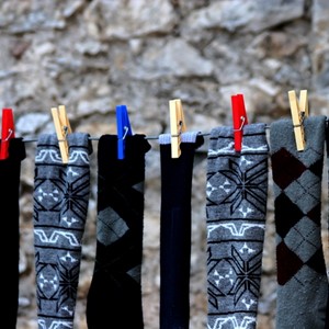 I attached the socks to the clothesline to dry.
