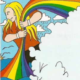 "He pulls his sled with a rainbow."